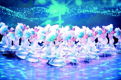 演职人员在第八届中俄博览会文艺演出现场进行表演。新华社发