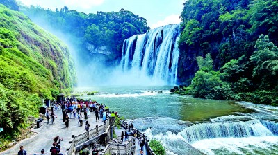 游客在贵州省安顺市黄果树瀑布景区游览。新华社发